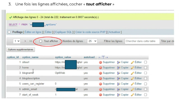 Retrouver adresse de connexion admin WP via phpmyadmin